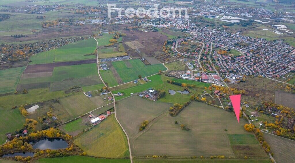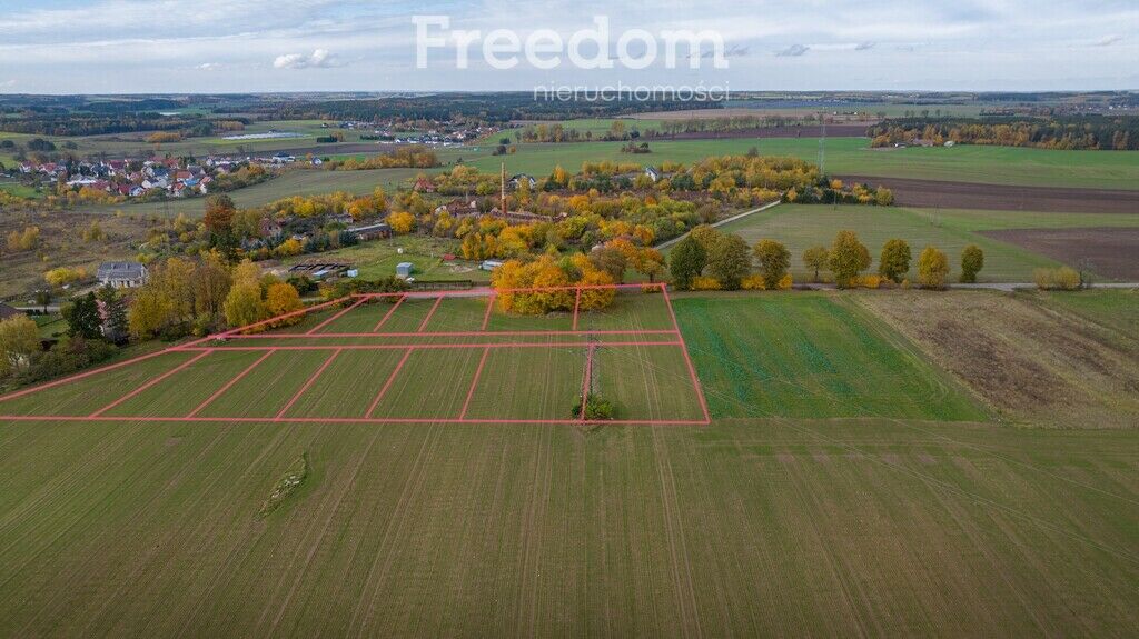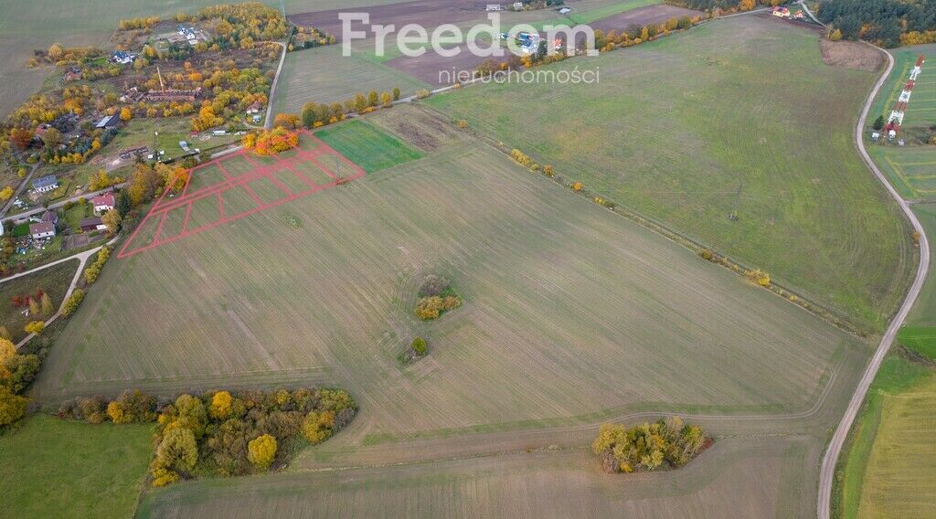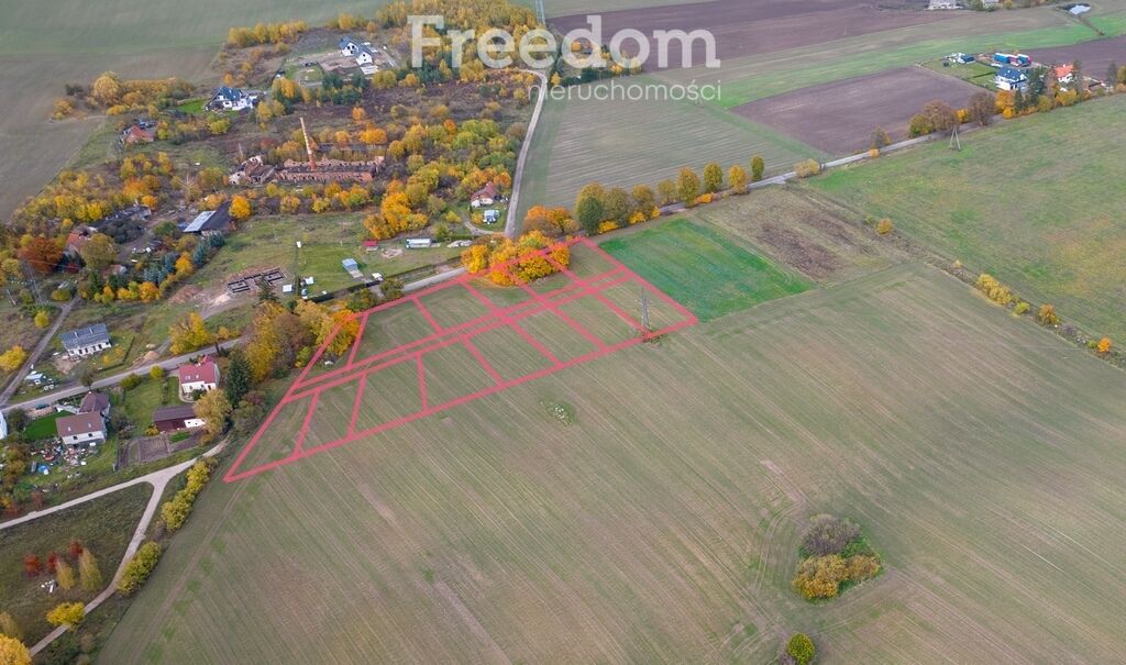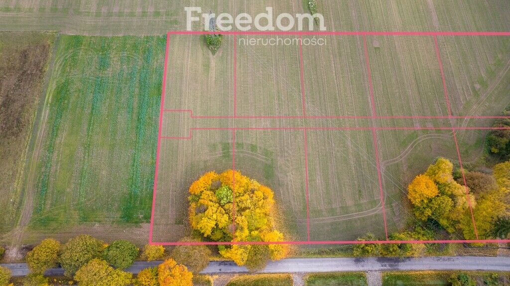 działki; linia napowietrzna wzdłuż działki/drogi asfaltowej.